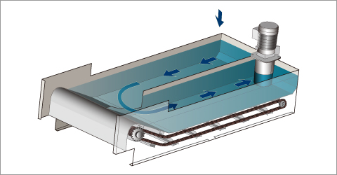 (standard model) - Designed to turn the coolant in the tank. By increasing of the number of coolant's passing through the magnetic field, the sludge separation performance has improved.
